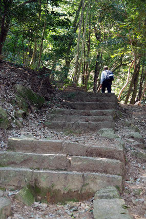 Though it was spring on the coast, it was still very wintery inland in the mountainous centre of Shikoku. We donned our hiking boots for a trek up a snowy mountain side in brilliant sunshine. |