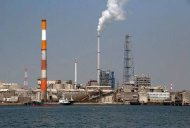waterfront is dominated by huge industrial works, which we later gathered