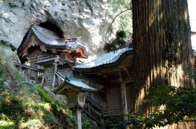 sunk artly in a cave and buttressed by a huge tree. |