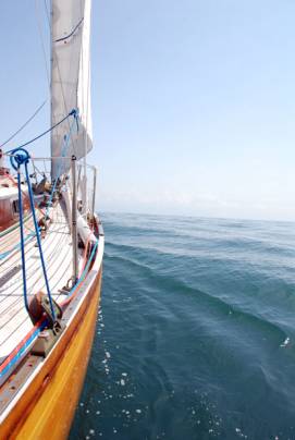 were doing 9 knots over the ground with only the No 4 and three reefs.