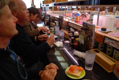 conveyor and you pluck them off according to your liking. The bill is then