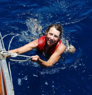 for Vicky to take a very brief swim – well attached to the boat – in the 3,000