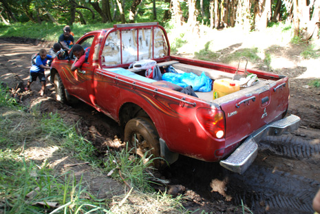 which were spent bouncing and gyrating in the back of a pick-up (and
