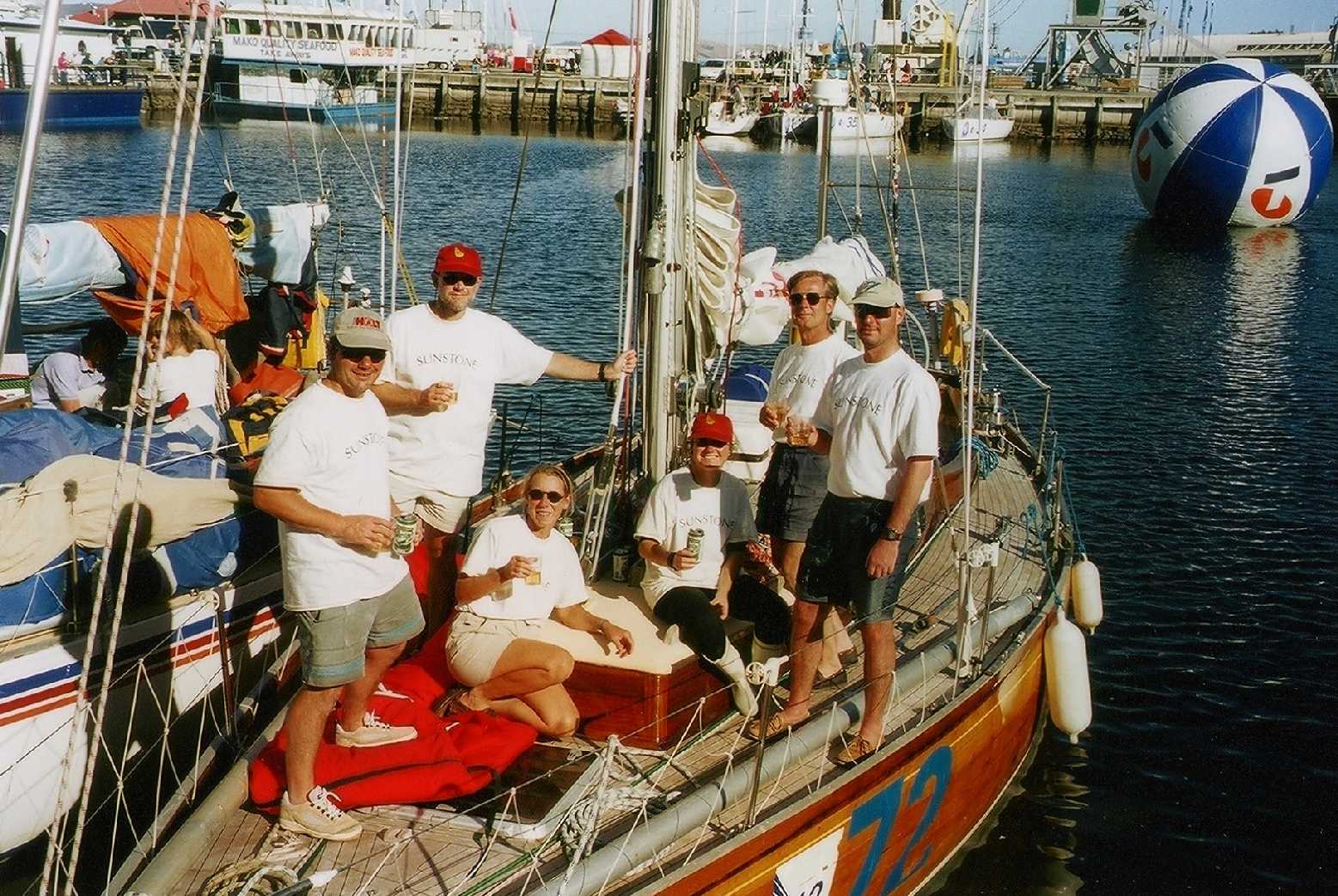 Though the organisation of the Race and the reception of yachts in Hobart was excellent, the results service was not. Even the Commodore of the Royal Yacht Club of Tasmania, hosts at the finish, thought we were third in our division 18 hours after we had finished. We did not actually confirm that we had won our IMS C Division until nearly two days after we finished and then it was by chance through the Race website. Since we had been reasonably happy with the idea of being third, we were delighted to be first and it was a just reward for our cheerful, resilient and hardworking crew. The crew, quite rightly were making hay by having a thoroughly good time in Hobart, John, Viv and Andy even hiring a seaplane to view some of the bits of Tasmania they would have liked to visit at greater leisure. Michael put off his flight back to Sydney twice. In the meantime, Tom and Vicky began the slow process of reconverting 'Sunstone' from racer back to cruiser again, with pauses for naps and a few beers in between. The prize-giving came as something of an anti-climax. We are used to more formal occasions at which there is something of a party atmosphere. It seemed that most of the recipients were partied out. In any case there were lots of speeches, but the prizes were whisked out of competitors hands the moment the publicity photos had been taken and returned to the armoured container. As well as our divisional prize, Vicky got a special prize as first female skipper. |