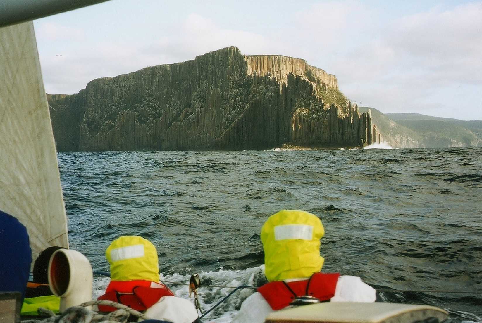 And suddenly it was all over, the crew hurried off to the airport and we made arrangements to haul 'Sunstone' out for a few days to deal with the splines which had popped falling off waves. Sailor that she is, Fiona was understanding about missing several days cruising and instead was a great help to us in sorting out the boat. After the first couple of days, Vicky and Fi went off exploring the nearer bits of the countryside, while Tom finished off his work on the splines. This went smoothly and quickly, but only because of the kindness of any number of new Hobart friends who helped find such essentials as routers and splines, quite apart from providing Fi with accommodation and all of us with dinners. It was wonderful hospitality. The only sadness was the theft of our divisional winners pennant from the boat one night. |