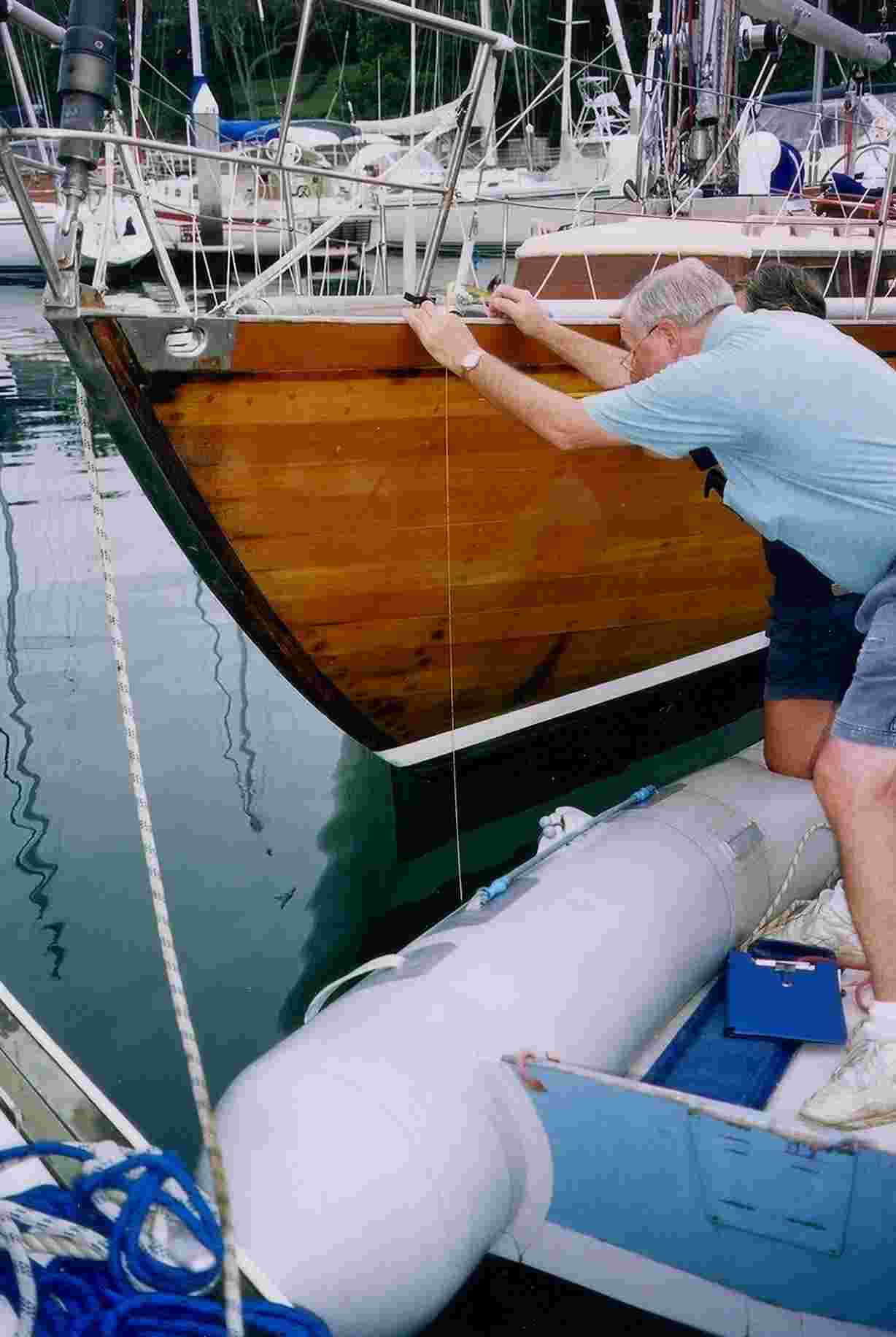 We had made a decision early in our progress down the coast that it would be better to stay in Pittwater, just outside Sydney during our race preparations than to plunge into the big city. This turned out well. The Royal Prince Alfred Yacht Club in Newport on Pittwater was welcoming and helpful. Newport itself and neighboring Mona Vale were within reasonable biking distance and had all the shopping we needed including a very good chandlery. John Anderson, the Chief Measurer for NSW lived close by and was able to come down to do a fresh set of afloat measurements and issue a new IMS certificate, while David Kellett, a friend from Tom's days on the ORC also lived close by. These were the compensations. However, it was still necessary to offload all our gear, goods and chattels for the remeasurement, putting some into a hired store in Mona Vale for collection in April and others back onto the boat afterwards. The extra safety regulations for the Race also meant that we had to purchase a good deal of new equipment including sealed batteries to replace ones which were still in perfectly good condition. Tom took his HF radio qualification and both of us attended required safety seminars, similar to the RYA's excellent Survival at Sea course. We also managed to get a coat of varnish on the hull and coach roof, knowing well that chances later would be limited, and hauled out for three days to put the final touches on the bottom and have the propellor measured. Typically, almost all of this activity took place during one of the wettest periods in NSW history. By the end of it one third of the state was under water - about the same proportion as 'Sunstone'. |