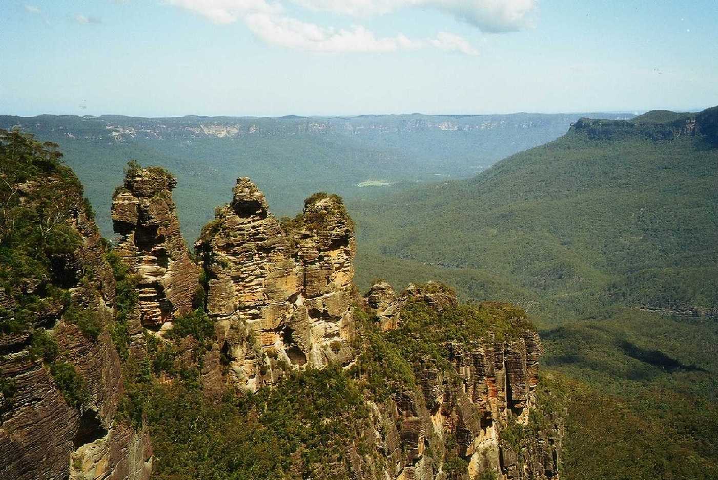 In the midst of all this nautical busy work we managed two breaks. The first was the OCC meet at the Basin in Pittwater, where we made contact or met again a number of Australian members. The second was to drive down to Canberra to celebrate Mary and Ron Stearn's 50th wedding anniversary. They were in fine form in the midst of a formidable family gathering. Despite - or perhaps because of - the importance of the occasion, most of the family managed to spend large amounts of time in Ron and Mary's pool or lounging beside it. A side trip took us to the Snowy Mountains, where we managed an interesting hike despite some of the poorest signposting we have encountered. Vicky was foiled by fog and snow from visiting the top of Mt. Koskiosko, much to Tom's relief. Our drive back to Pittwater took us through the Southern Highlands where Erich and Gillian Brosell from 'Holger Dansk' put us up at their lovely house in Bowral. We then detoured the next day to the Blue Mountains, where we went both up and down some 900 steps near the Three Sisters. |