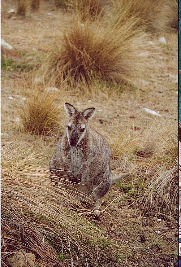 On our first visit to Hobart, Tom's immersion in spline therapy had given him little opportunity to see the sights, so we returned to Constitution Dock in order to explore the town, deal with our email and hire a car to explore inland a bit more. With Ed and Lynn from 'Constance', we drove to Mount Field National Park and clambered up Mount Field East, the boulder-clad heights of which give miles of views over the coastal plains. Hobart itself was delightfully sleepy considering that it is a state capital. The morning traffic reports relayed with concern the information that there were 50 metre queues building up at some intersections. Hobart abounds in shops selling local crafts and we became so enamoured of a 'rocking ram', complete with real sheep skin, that we could not resist sending as a present to our new niece, Elizabeth. Knowing that we would have several weeks in the wilds, Tom also stocked up on the cruising essentials of paperbacks, beer and Pringles. We were ready to head south again down Vicky's very own Channel. A long day sail took us down to Port Esperance, where we tucked neatly behind Rabbit Island. The whole area of the Channel is now filled with fish farms. It can't be said that they add to the attractiveness of the scenery. At the same time they are essential for the continued economic viability of the under-populated part of the state. For the fishermen there must also be a considerable attraction in not having to brave winter storms at sea and to be able to sleep each night in their own beds. Whether this has the same attractions for their wives is hard to say. Though the Huon Valley just to the north is a reasonably prosperous fruit-growing area, further south they have little but fish and timber from which to make a living. Things have changed very little in 150 years. |