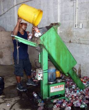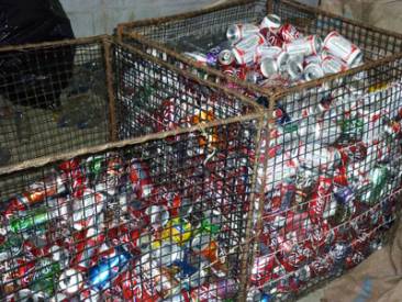 The cans are then compressed for shipment for reprocessing in Taiwan. It was
