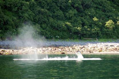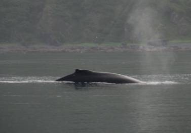accompanied by a gently rolling whale, feeding along the shore. However, we