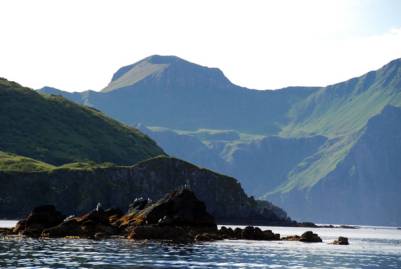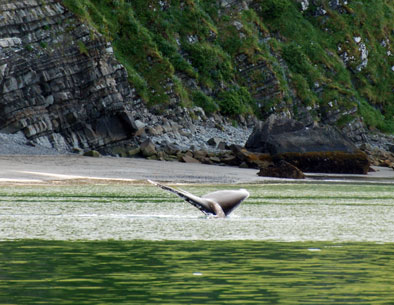 the whale waved a lazy flipper at us. The scenery around Three Saints was, if