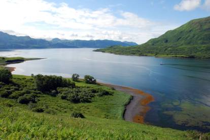 Strait narrows as it runs north to the tiny settlement of Old Harbor. The village,