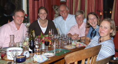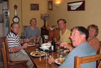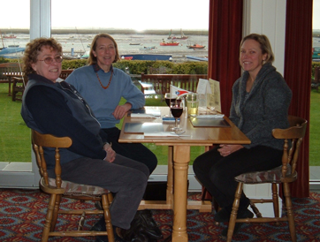 Partly to make the necessary pre-op visit to Bournemouth and partly as a reminiscent tour, we took a swing through Southern England, taking in the Southampton Boat Show and visits to Sunstone's previous home on the Hamble, as well as to relatives and friends. However crowded England now seems to us, what remains of the English countryside is still some of the prettiest in the world and the villages of Somerset, Wiltshire and the West Country are some of the most attractive anywhere. The highlight of our tour was a reunion party of former crew members, very kindly and superbly organised by our racing friends Chris and Georgie Brown - with the able assistance of our former bowman, Richard Glen. It was wonderful to catch up once again with the crew members who had made Sunstone's successes possible, and to be reminded just how much fun they were to be with. We were very grateful to Chris and George for making it possible and to Mark, Richard, John, John & Viv and Kim & Amanda. |