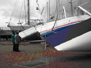 Boats blown down on the hard-standing at Piriapolis, Uruguay |