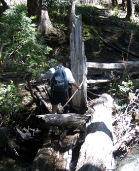 Back in Argentina we took things a little easier - though every thing is relative. On successive days we tackled an 'easy' lakeside ramble, which only had us plunging in and out of ravines, and then headed up the track which ends on the slopes of Volcan Lanin. Fortunately we were not equipped with the climbing ropes and crampons necessary for the last part of this trek and so stayed below the tree-line, where there were in any case quite enough obstacles to a gentle stroll of the kind that Tom prefers. The compensations throughout these tribulations were the wonderful scenery. Despite the fact that this was the height of the tourist and holiday season in the area, we found the trails virtually deserted, especially in the morning - the Argentines not being notably early risers. Each evening we returned to our little B&B in Junin tired but happy. On our last day in the area we returned to the bustle of San Martin, took a genuinely gentle lakeside stroll and prepared for the long trek back to Mar del Plata. |