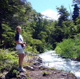 As always these days, we made sure that the hull and all the other external parts of the boat had fresh coats of varnish or paint. By the second week in January, Vicky felt that her regular exercises and our bike trips around the city had done enough to strengthen her hip that we could head off for more challenging pedestrian adventures. Once again we closed up Sunstone and headed to the Terminal de Autobuses, this time for the 22 hour trip to San Martin de Los Andes, right across the Pampas on the western side of Argentina. Fortunately much of the trip is inevitably in darkness, which is just as well, given the unrelieved tedium of the pampas scenery and some of the longest straight bits of road not built by the Romans. As you approach the Andes you enter the long valley of the Rio Colorado, where gradually the land rises either side two or three miles away. Between these escarpments the countryside becomes more lushly green and suddenly there are orchards and fruit farms everywhere. By the end of the valley you are entering the foothills of the Andes, and though the scenery is still more arid than the forests of Chile on the western side, there are groves of pines and distant glimpses of snow-capped mountains. |