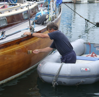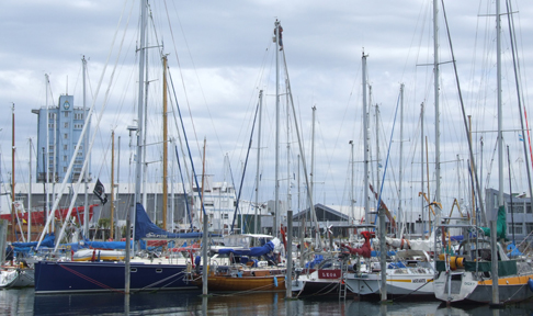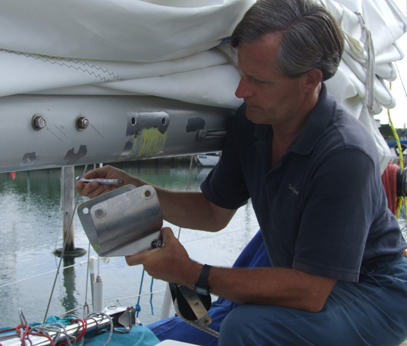 Cruisers galore in all different shapes and sizes. Tom surveys them from the top of the mast. |
