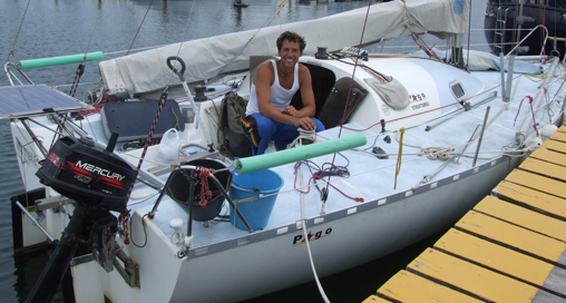 Antoine in his ideal cruising boat for the Beagle Channel - a 6.5 metre mini-tonner! |